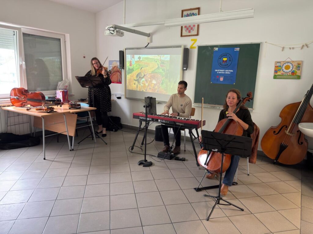 U sklopu nacionalnog programa Ruksak (pun) kulture, koji zajednički provode Ministarstvo kulture i medija te Ministarstvo znanosti, obrazovanja i mladih, prošli smo tjedan u Područnoj školi Korija ugostili profesore Glazbene škole Josipa Hatzea iz Splita.