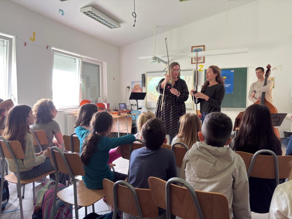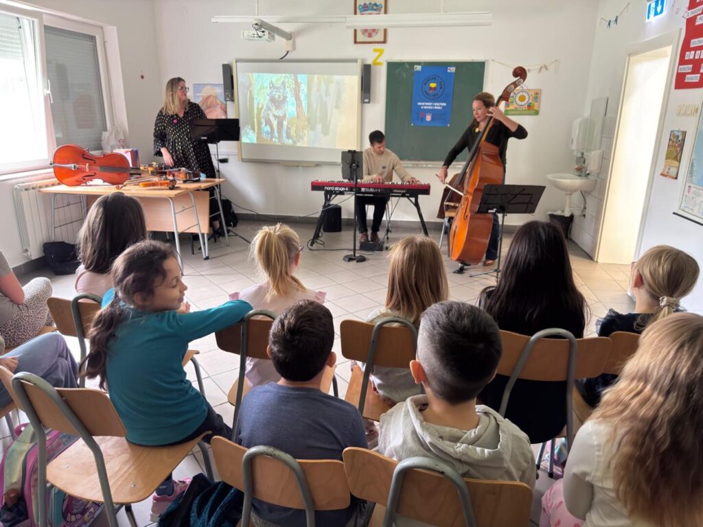 Na zanimljiv i kreativan način predstavili su nam priču o Crvenkapici — ispričanu glazbom, a ne riječima! Program pod nazivom Upoznajmo gudačku obitelj omogućio je učenicima od 1. do 4. razreda da se upoznaju s gudačkim instrumentima i otkriju kako glazba može pričati priče.