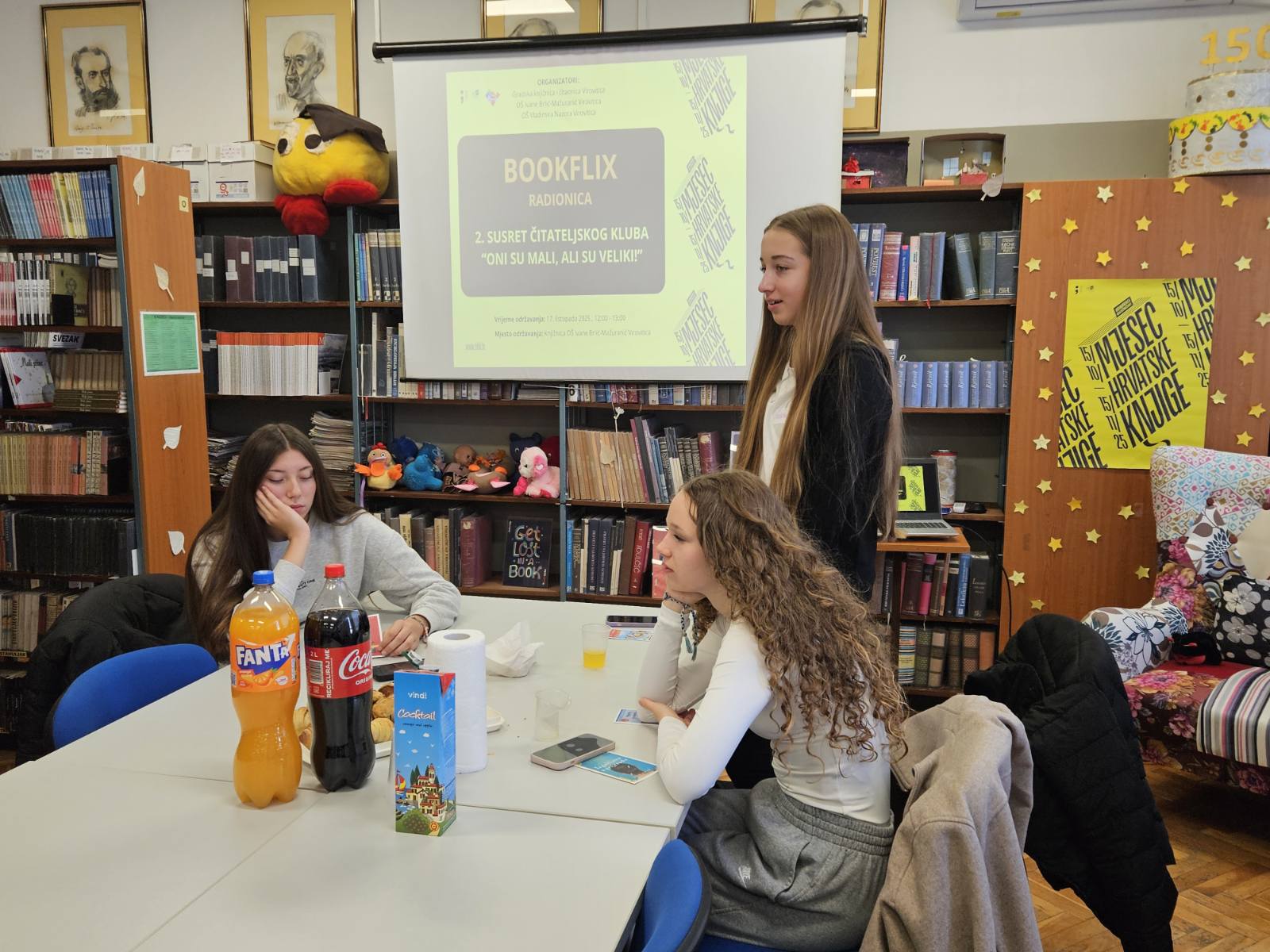 U četvrtak, 17. listopada, u knjižnici OŠ Ivane Brlić-Mažuranić održan je drugi susret čitateljskog kluba „Oni su mali, ali su veliki“. Susret je ovoga puta bio zamišljen kao radionica izrade Bookflixa, kreativne izložbe koja na zabavan način potiče čitanje.